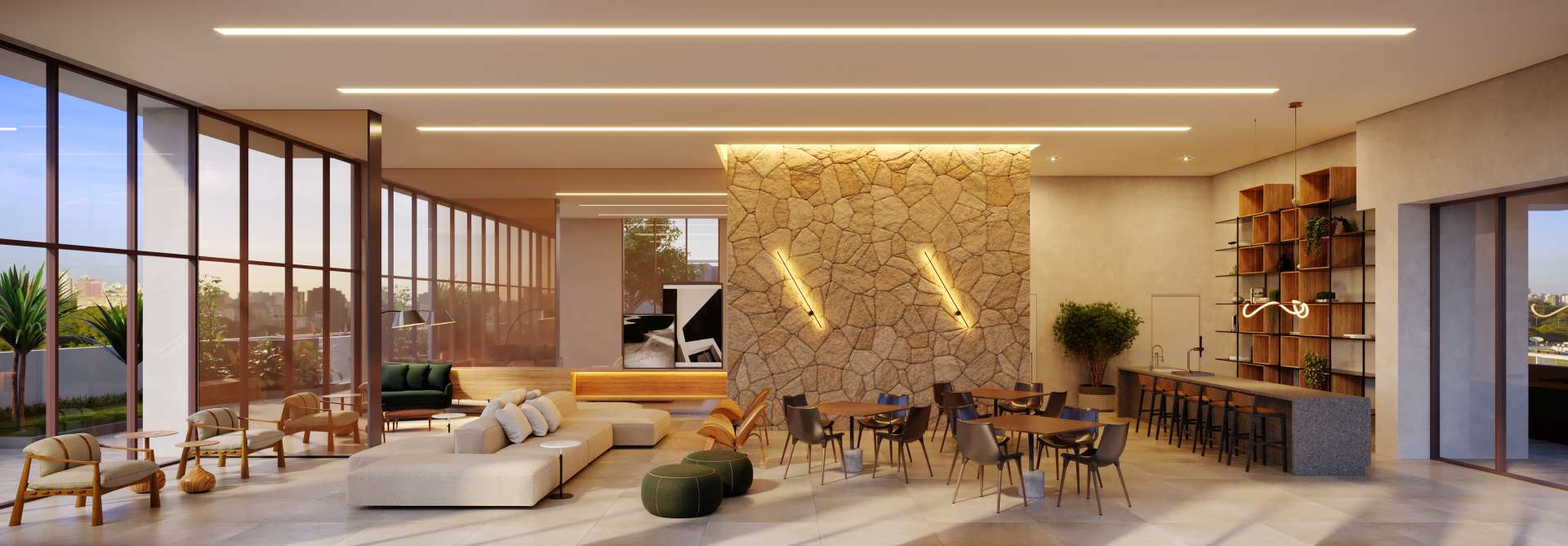 Receba seus convidados através de um elevador panorâmico que permite a experiência Infinity desde a portaria.